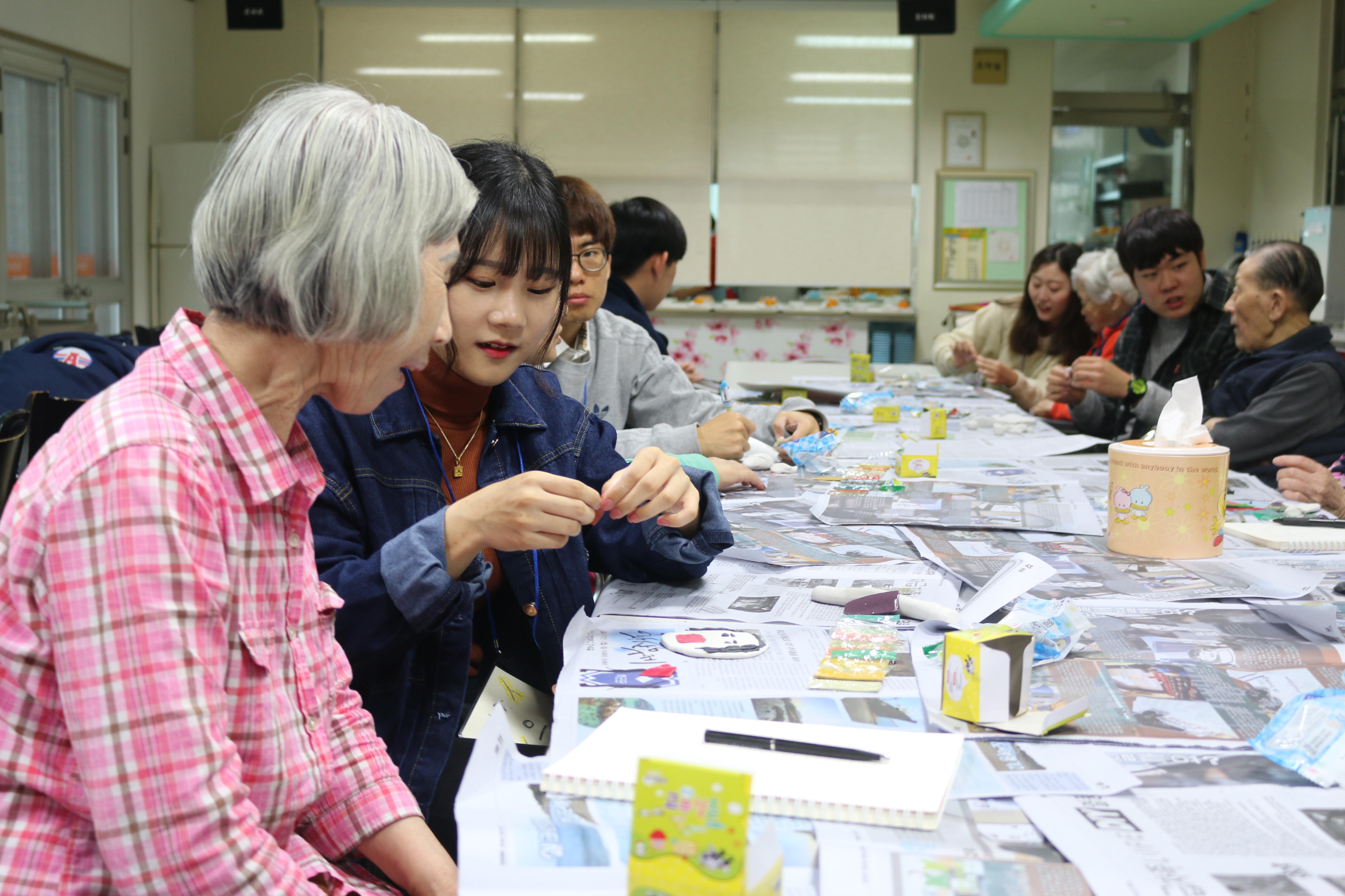 건양대 학생들이 어르신들과 '보고 싶은 그대여' 프로그램을 하고 있다.jpg