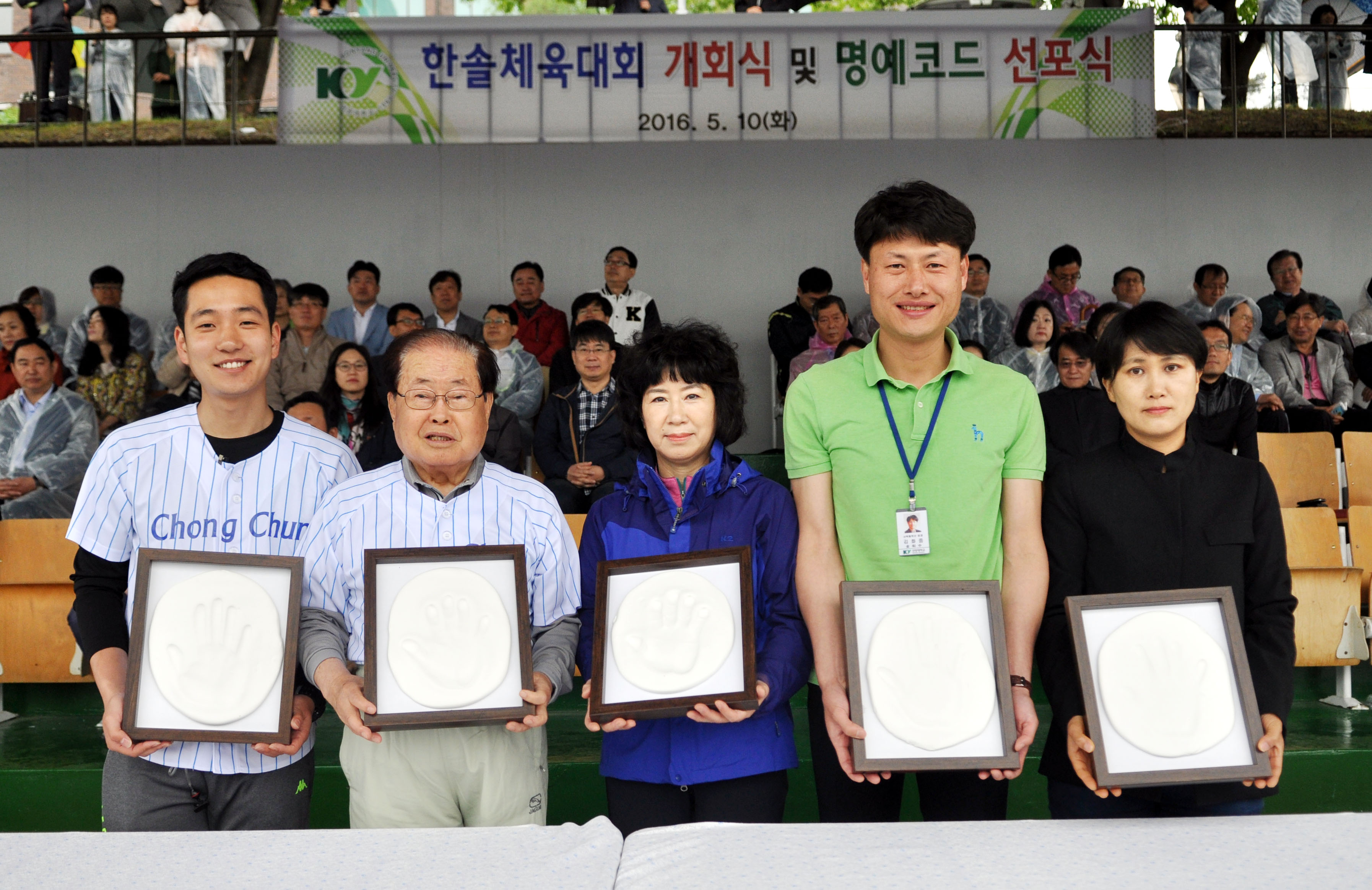 핸드프린팅하고 난 뒤 왼쪽부터 홍승우 총학생회장, 김희수 총장, 윤선영 재활복지교육대학장, 김화중 직원대표, 박미희 주민자치기숙사대표,.jpg
