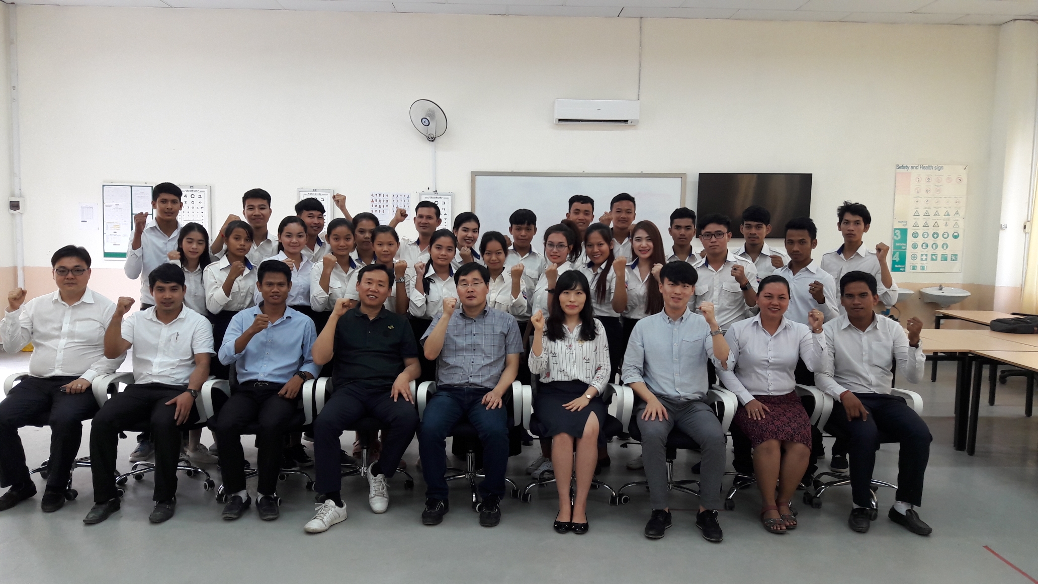 건양대가 캄보디아에서 운영하는 안보건 관련 교육과정 수강생과 건양대 교수의 모습.jpg