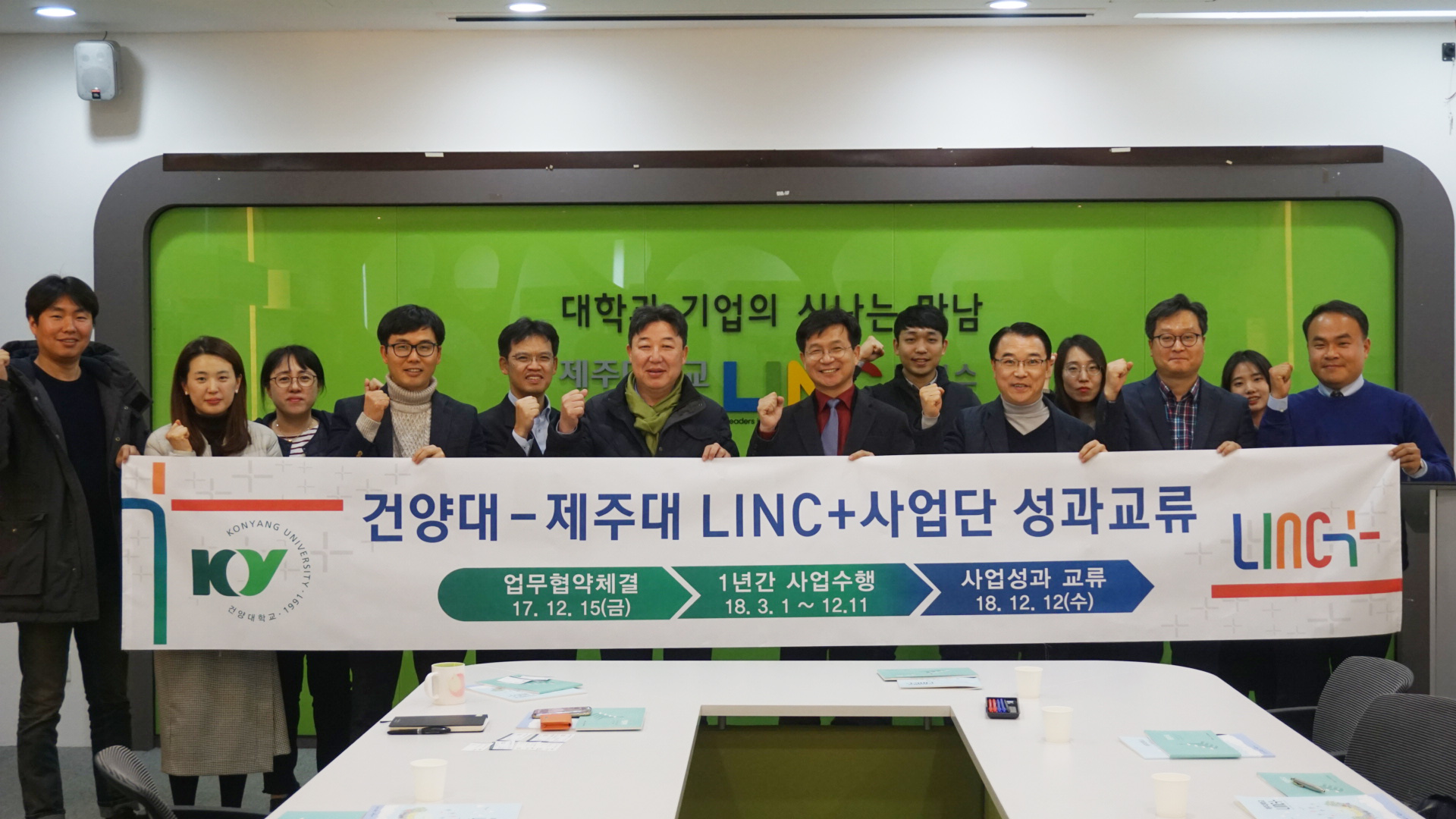 13일부터 14일까지 제주도에서 열리는 사회맞춤형 산학협력 선도대학(LINC+) 육성사업 동계 포럼에 참가한 건양대학교(총장 이원묵) LINC+사업단(단장 김영일)이 현지에서 제주대와 선문대 LINC+사업단과 성과교류회를 가졌다.