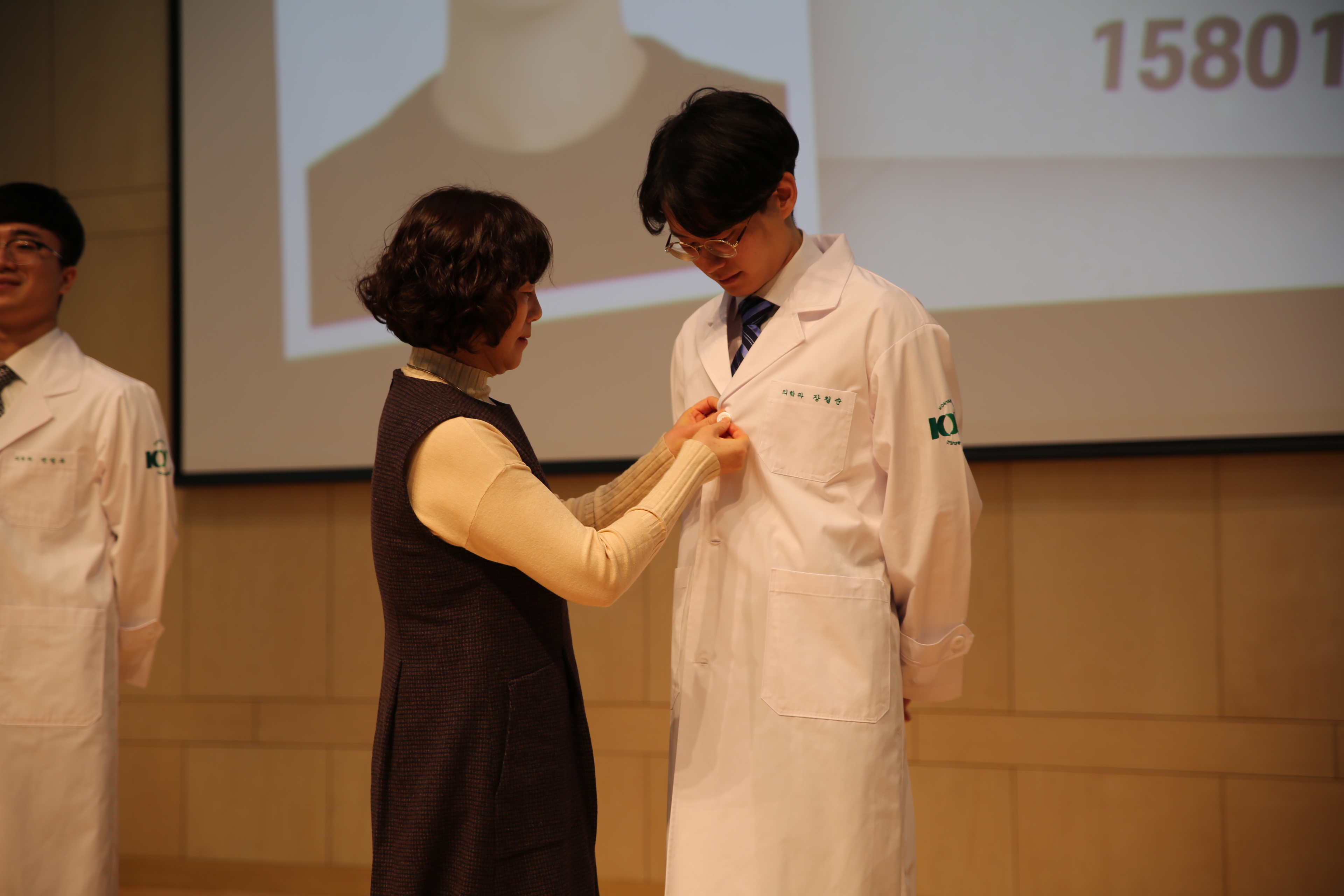 이날 화이트가운 세레모니는 학생뿐만 아니라 학부모 및 가족, 교직원 등 총 230여명이 모인 가운데 열렸으며 건양대 설립자인 김희수 이사와 건양대 이원묵 총장, 건양대병원 최원준 원장, 건양대 의대 박창교 학장 등도 참석했다.