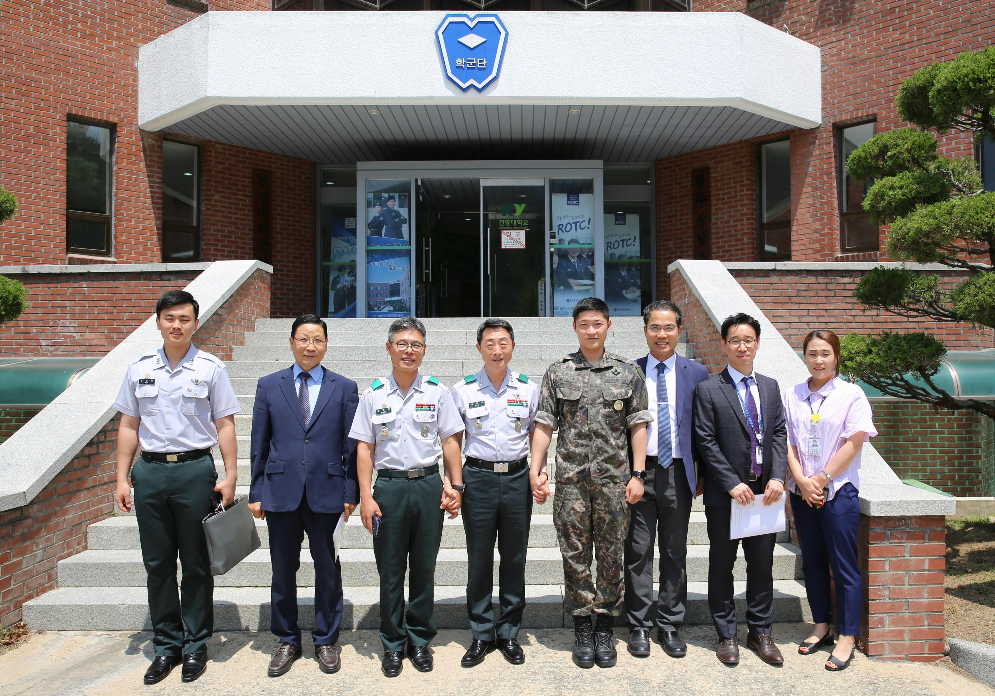 건양대 학군단 앞에서 기념사진을 찍는 이석구 총장(왼쪽부터 4번째).JPG