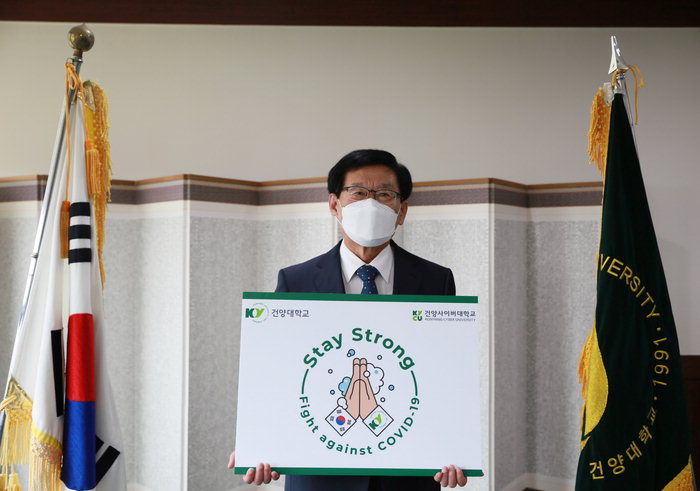 건양대학교 이원묵 총장이 17일 논산 창의융합캠퍼스에서 코로나19 극복과 감염병의 조기종식을 응원하기 위해 외교부가 진행한 ‘Stay Strong 캠페인’에 동참했다. ‘Stay Strong 캠페인’은 기도하는 손 모양을 손 씻는 그림으로 표현한 팻말을 들고 사진 촬영을 한 후 SNS에 게재하는 방식으로 코로나19에 대응하는 전 세계의 연대와 지지를 확산하기 위한 글로벌 릴레이 캠페인이다. 이원묵 총장은 한밭대 최병욱 총장의 지목을 받아 Stay Strong 응원 로고와 문구가 적힌 팻말을 들고 이번 캠페인에 동참했다. 이 총장은 “생활속 거리두기, 개인 위생수칙 준수 등 성숙한 시민 의식을 바탕으로 코로나19의 조기 종식되길 기원한다”며 “조속한 시일 내 코로나19가 종식 될 수 있도록 건양대 구성원 모두가 대학의 역량을 집중할 것”이라고 밝혔다. 한편 이 총장은 다음 캠페인 참여자로 서울교육대학교 임채성 총장을 지목했다.