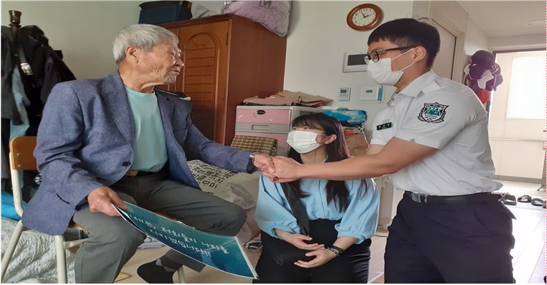 건양대학교(총장 이철성) 군사경찰대학(학장 윤형호) 공공인재가치홍보기자단이 6.25 전쟁 발발 71주년을 맞아 지난 25일 계룡시에 거주하는 6.25 전쟁 참전용사 이순혁씨를 찾아가 작년에 이어 위문하는 시간을 가졌다.