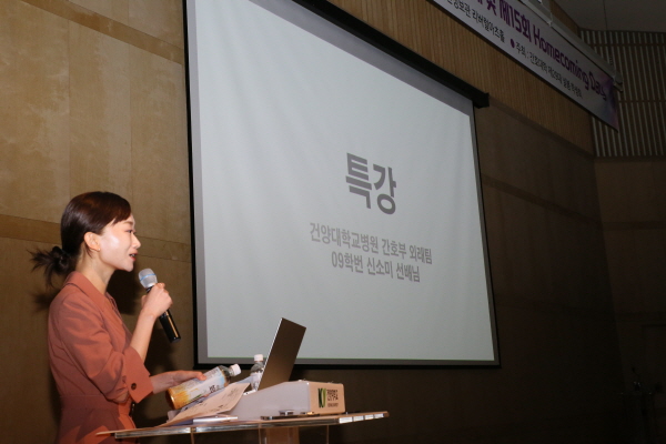 ‘Pandemic에서 Endemic으로, 일상으로의 회복’이라는 주제로 졸업한 동문과 재학생, 간호학과 교직원과 내외빈 등 250여명이 참석한 가운데 개최된 이번 행사는 건양대학교의료원에 재직하고 있는 신소미 졸업생의 특강과 졸업생 홈커밍데이, 발전기금 전달, 재학생 연구팀의 논문발표 순으로 진행됐다.