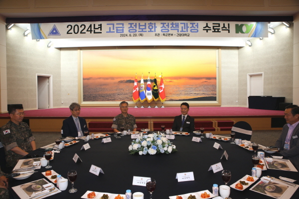 건양대학교(총장 김용하) 평생교육원(원장 이시우)은 20일 오전 계룡대 무궁화회관에서 영관장교, 군무원을 대상으로 진행한 <2024년 고급 정보화 정책과정> 수료식 및 육군본부 정보화기획참모부(부장 최창운 소장)에 감사패를 전달하는 행사를 개최했다고 밝혔다.