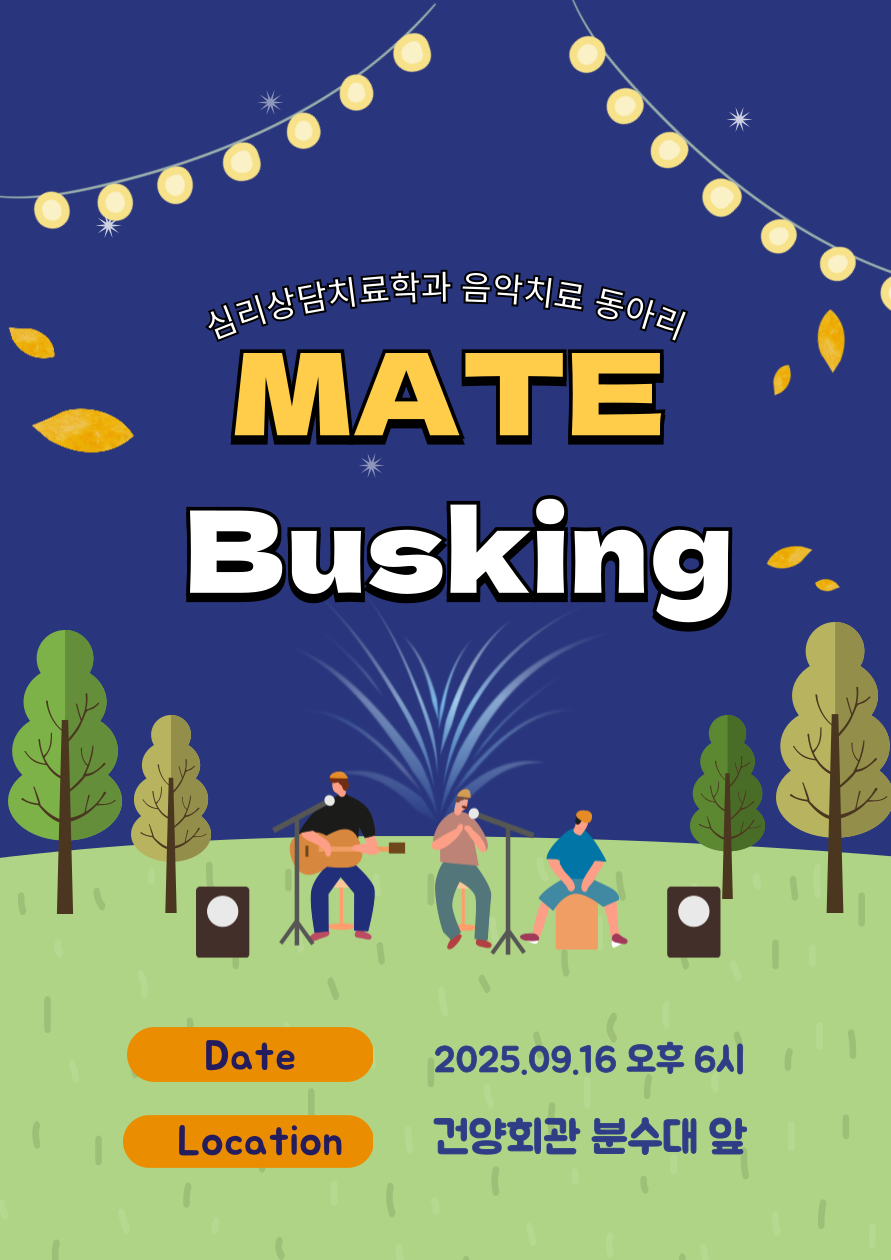 제목 | 2025 음악치료동아리 MATE 버스킹에 초대합니다. | ||||