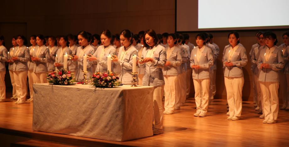 내년 2월 졸업을 앞둔 간호대학 4학년 학생 195명은 이날 졸업메달을 수여받는 동시에 스승으로부터 촛불을 이어받는 의식을 치르며, 나이팅게일의 희생과 숭고한 정신을 본받아 의료전문가로 헌신할 것을 다짐했다.