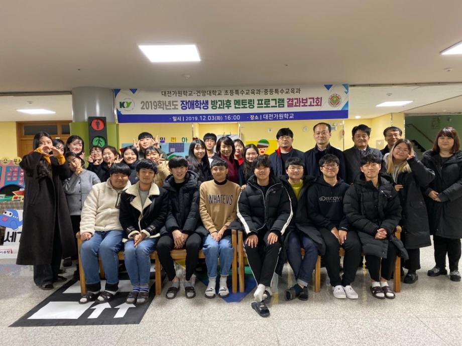장애학교 봉사학습 8년째 이어온 건양대 초등특수‧중등특수 학생들 건양대학교(총장 이원묵) 초등특수교육과와 중등특수교육과 학생들이 3일 지적장애 특수학교인 대전가원학교(교장 권순오)에서 지난 한 학기동안 진행된 <건양 꿈드림 멘토링 프로그램>의 결과발표회를 개최했다. 건양대 초등특수교육과와 중등특수교육과 재학생 40여명은 매주 2시간씩 지적장애 특수학교인 대전가원학교에서 장애학생들에게 멘토링 프로그램을 제공하면서 자신들의 전공을 살린 봉사활동과 전공 공부를 결합한 봉사학습(Service Learning)을 8년째 실천하고 있다. <건양 꿈드림 멘토링 프로그램>은 ‘장애학생 방과후프로그램’이라는 현장 밀착형 교과목에서 진행되는 봉사활동으로 초등특수교육과 전혜인 교수와 분담교수의 지도 아래 사전 모의수업과 자문을 받아 활동 내용과 운영 방식을 개선하는 등 장애학생들의 적극적인 참여와 프로그램 효과 극대화를 위해 노력해왔다. 멘토로 참여한 초등특수교육과 2학년 박형민 씨는 “멘토링 프로그램을 통해서 멘티 학생들과 소통할 수 있는 기회를 가진 것이 좋았고, 두 학기에 걸쳐 참여하였던 멘토링을 마치게 돼 아이들과 헤어지는 것이 많이 아쉽다. 앞으로 좋은 특수교사가 되어야겠다고 다짐을 할 수 있는 보람찬 시간이었다”고 말했다. 전혜인 교수는 “특수교육을 전공하는 학생들이 장애학생들을 위한 방과후프로그램을 직접 계획하고 실행하는 기회를 가질 수 있어서 교사로서의 역량을 키우기에 좋은 경험이 되었을 것”이라고 밝혔다. 한편 대학생들에게 멘토링 프로그램을 실천할 기회를 제공한 대전가원학교의 권순오 교장은 “특수교육을 전공하는 학생들이 장애학생들을 위해 열심히 교재교구를 준비하며, 아이들과 함께하는 모습이 좋아보였다”며 “우리학교에서의 경험을 통해 특수교육을 전공하는 학생들이 이후에 좋은 특수교사로 성장하길 바란다”고 당부했다.