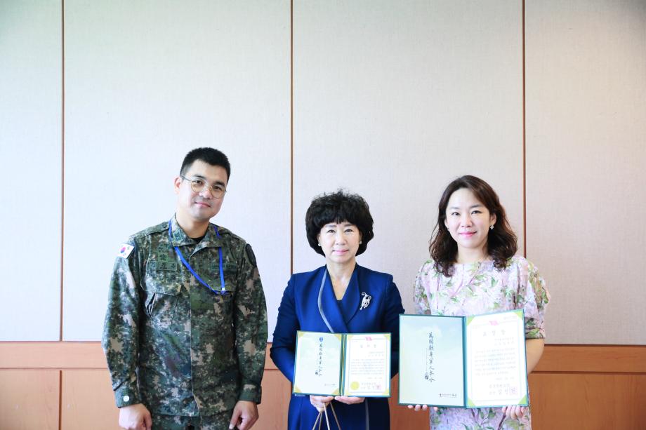 이번 전달식에 참석한 육군훈련소 인사과 복지담당관 김기복 상사는 윤 교수에게 평소 지역사회 영유아 보호와 교육을 담당하는 전문 보육교사 양성에 전력해 온 공로를 격려하는 육군훈련소장 명의의 감사장과 함께 부상을 전달했다.