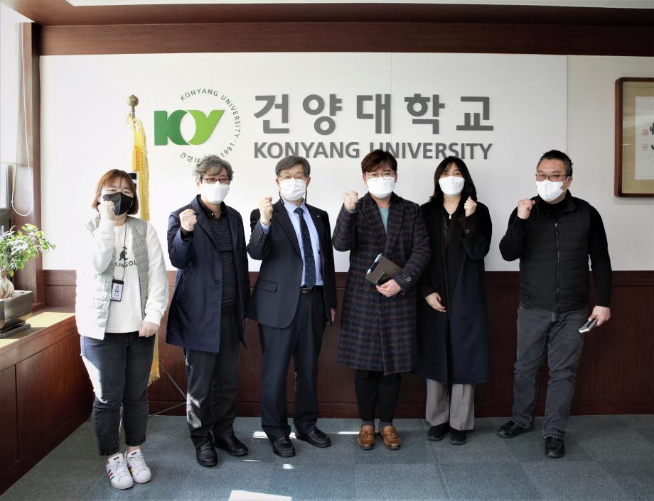 왼쪽부터 건양대 박선미 주임, 이시우 평생교육원장, 이철성 총장, 중부지역본부 조진현 대리, 중부지역본부 김도연 전임, 건양대 신재원 팀장 순.jpg
