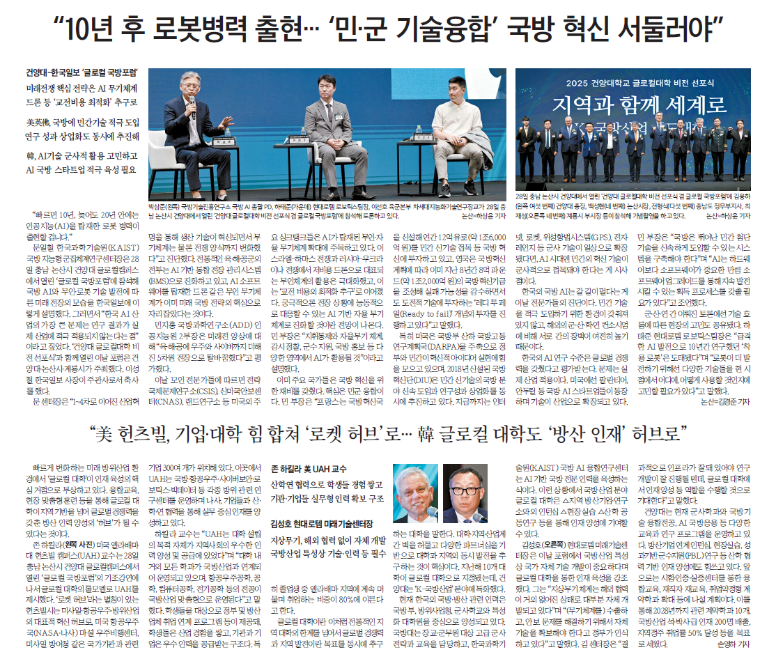 | 제목 | 건양대-한국일보 '글로컬 국방포럼' (2025. 8.29.) | ||||