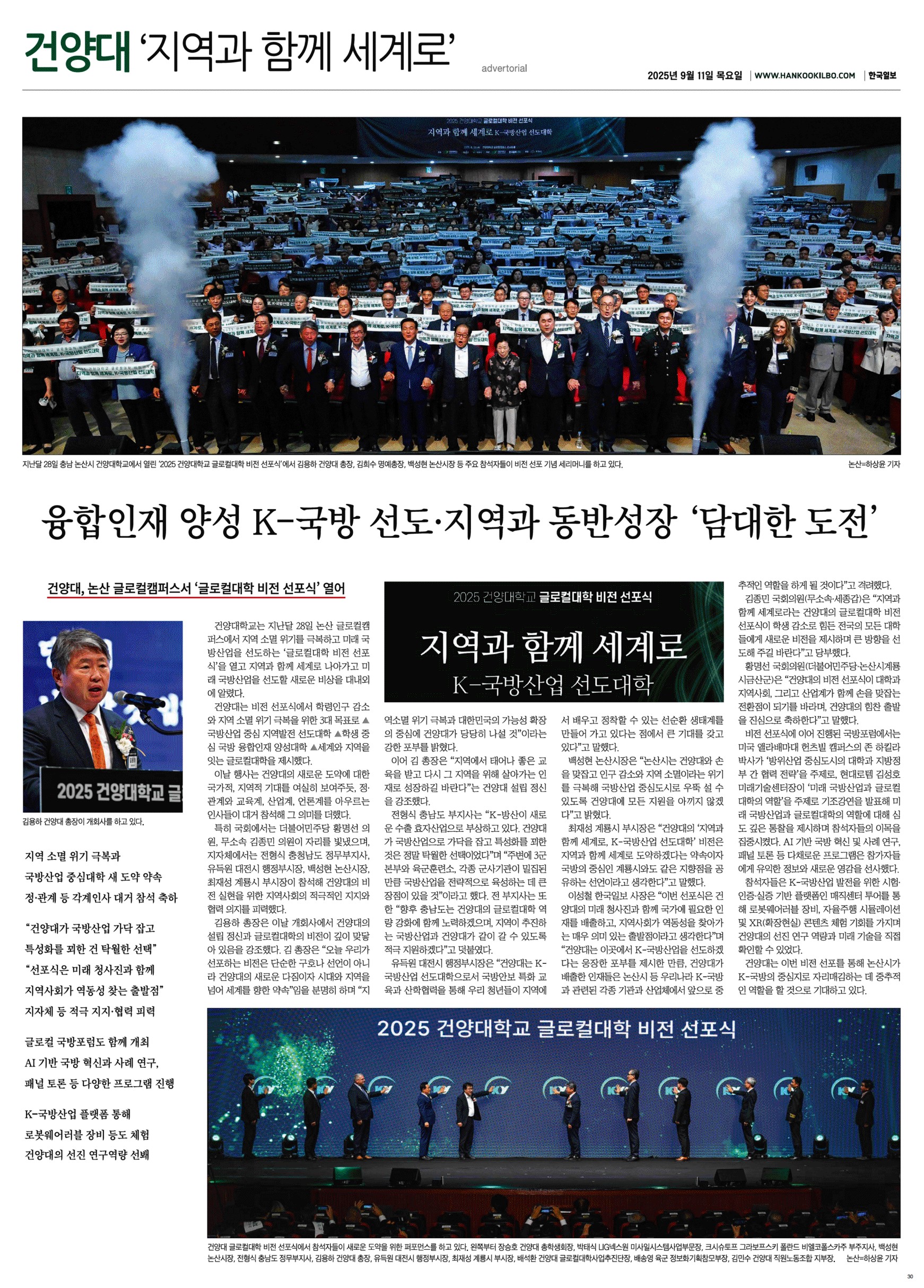| 제목 | 건양대, 융합인재 양성 K-국방 선도·지역과 동반성장 '담대한 도전'(2025.09.11.) | ||||