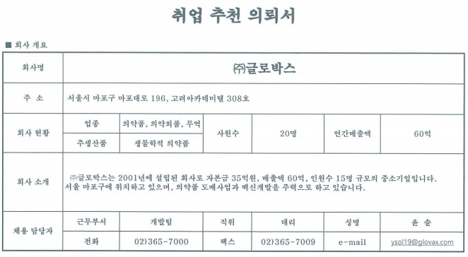 | 제목 | [(주)글로박스]생명공학 개발, 품질보증/품질관리분야 모집 | ||||