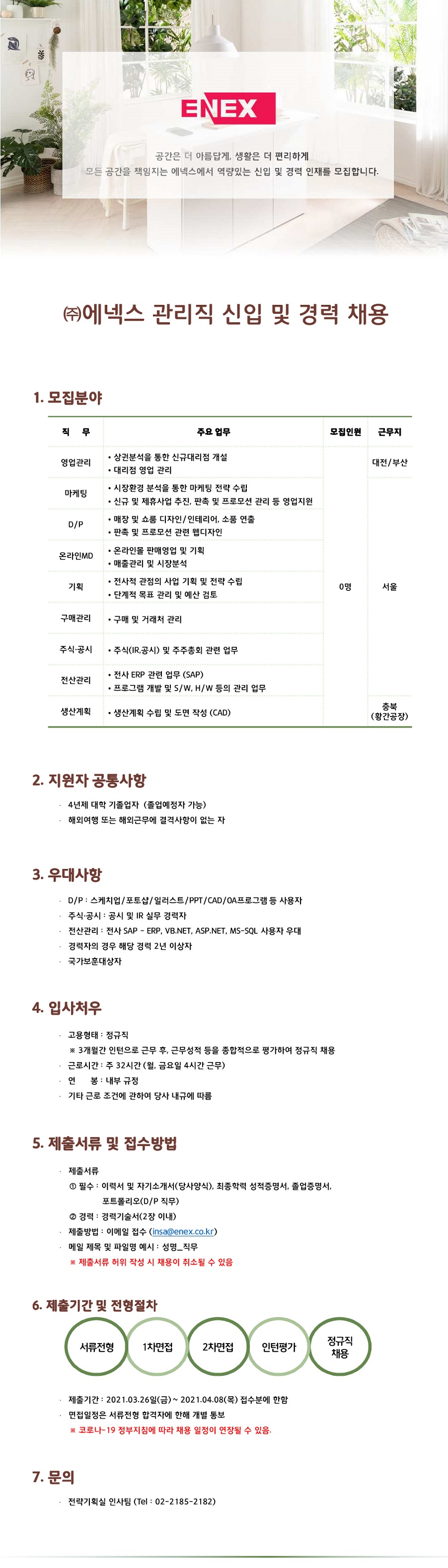 [(주)에넥스] 신입사원 채용 글의 상세내용