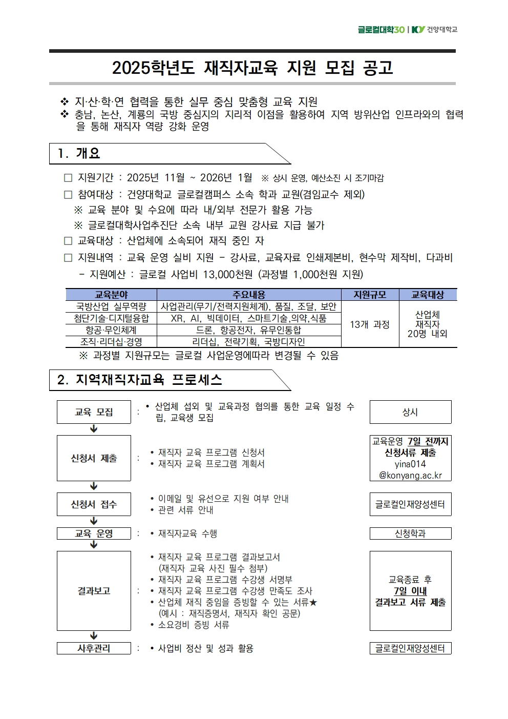 | 제목 | 2025학년도 지역수요 재직자 교육운영 모집 공고문 | ||||