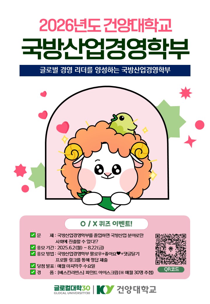 『 2026학년도 국방산업경영학부 입시브로슈어 』글의 상세내용을 확인하는 표로 제목, 부서명, 등록일, 조회, 첨부, 내용으로 나뉘어 설명합니다.