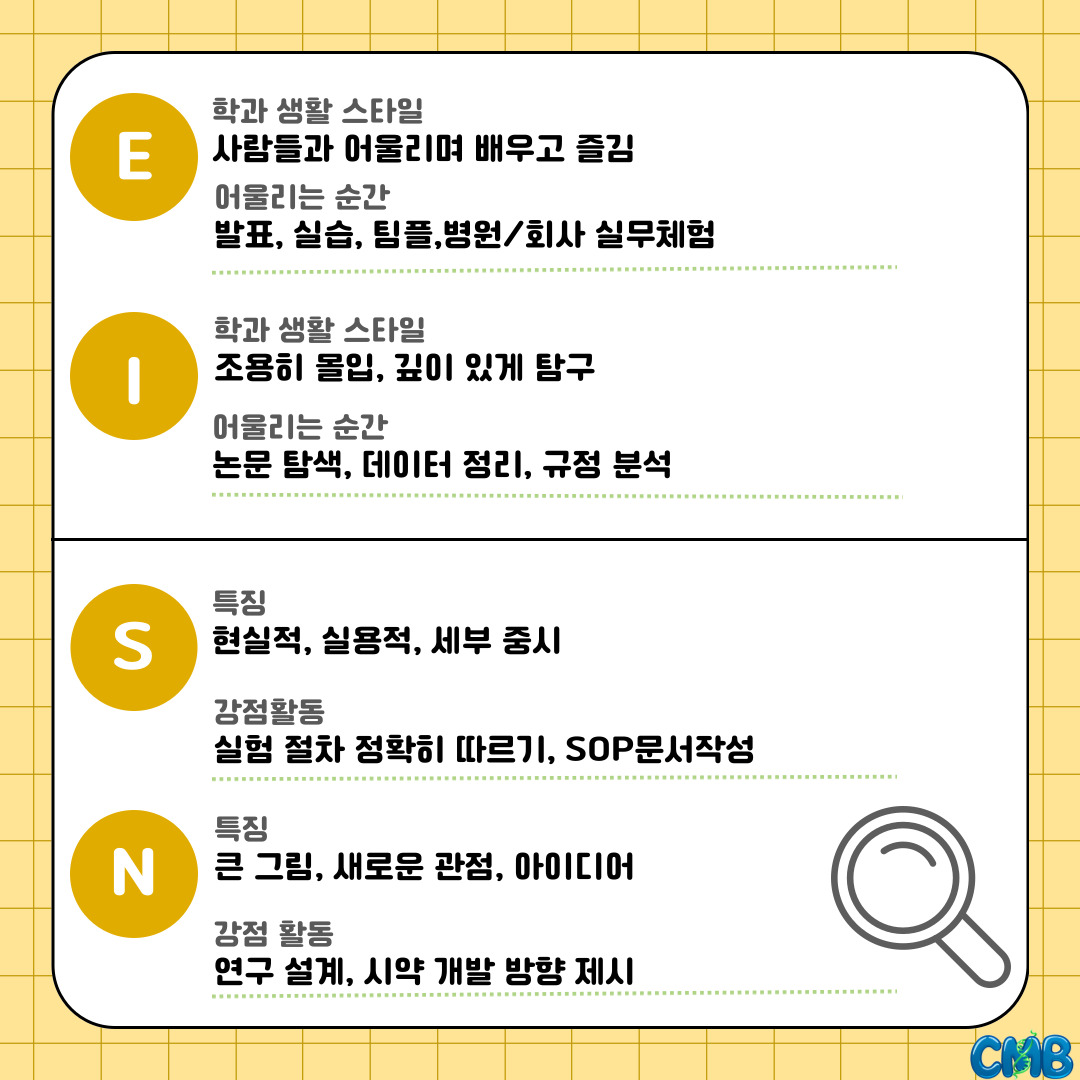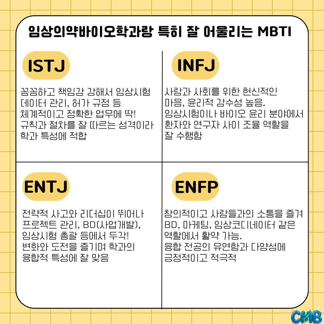 [카드뉴스] 임상의약바이오학과 찰떡인 MBTI는? 글의 상세내용