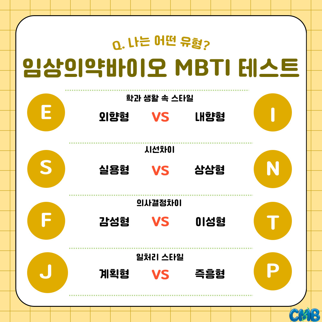 제목 [카드뉴스] 임상의약바이오학과 찰떡인 MBTI는?