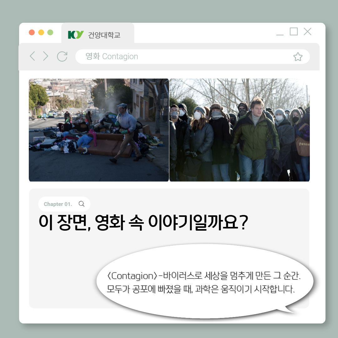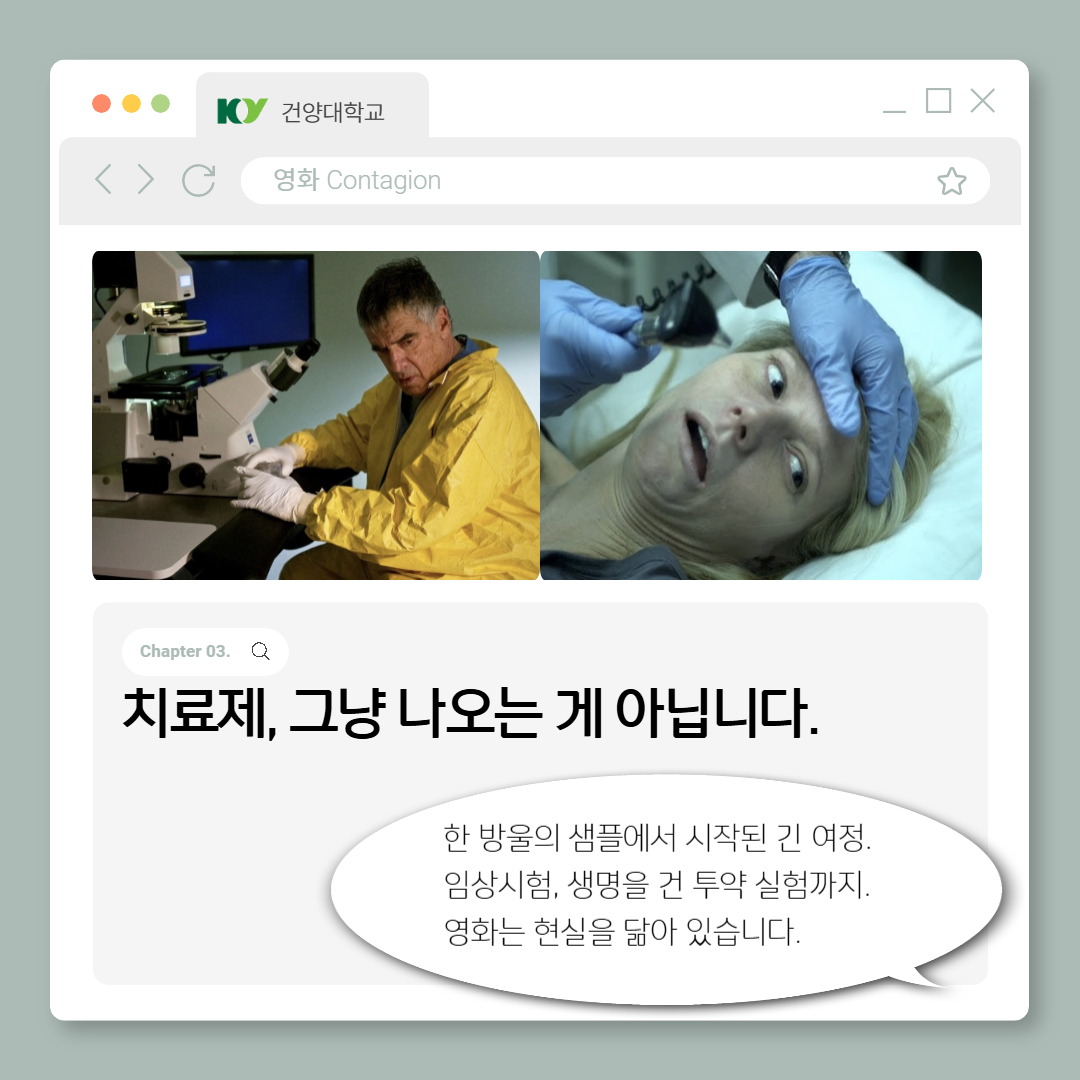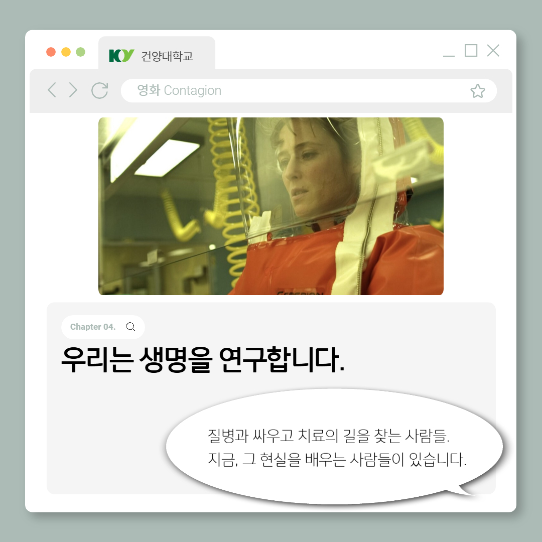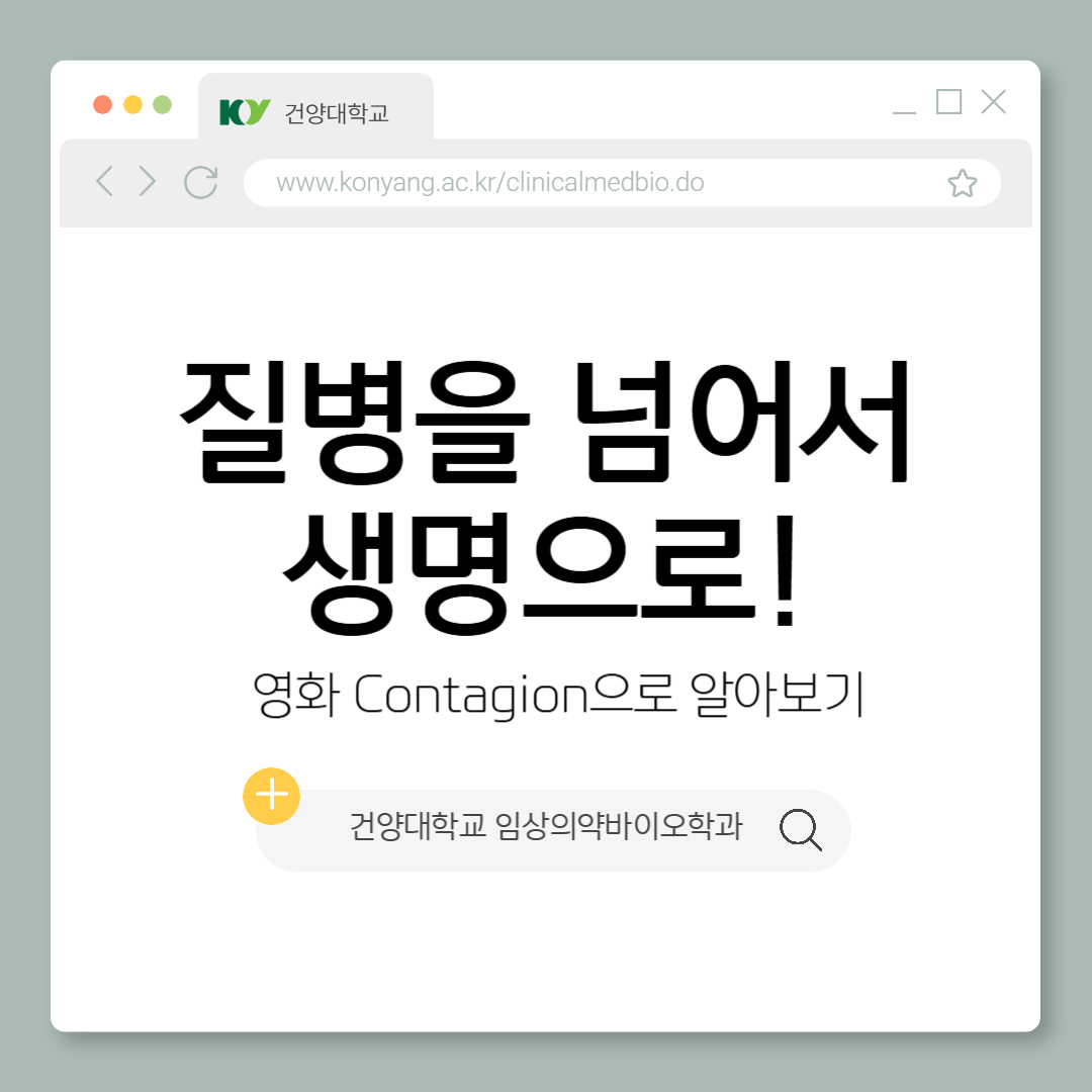 | 제목 | [카드뉴스] 영화 Contagion으로 알아보는 질병을 넘어서 생명으로! | ||||